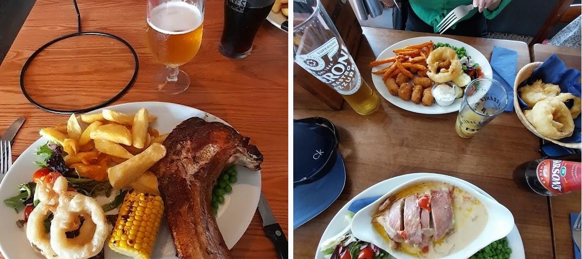 There lunchtime with my husband for a wedding anniversary meal. Lovely welcoming attentive staff.Fab service & food. I had steak & ale pie & chips my husband had salt water mega burger .chips & side order of garlic bread Both were huge ..I had planned on having a pud after but couldn't manage one 😳 Will pay another visit soon .
